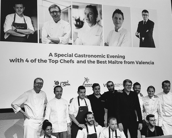 Maar liefst vier gerenommeerde sterrenchefs en 1 van de beste maîtres uit Valencia waren overgevlogen. Laatstgenoemde, Javier Andrés, ontving in 2014 de nationale gastronomieprijs en benadrukte tijdens de avond nog even hoe belangrijk wijn-spijs combinaties zijn.