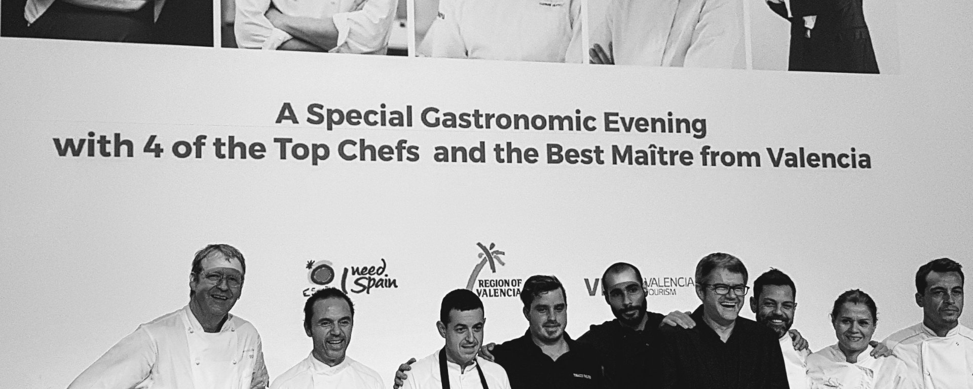 Maar liefst vier gerenommeerde sterrenchefs en 1 van de beste maîtres uit Valencia waren overgevlogen. Laatstgenoemde, Javier Andrés, ontving in 2014 de nationale gastronomieprijs en benadrukte tijdens de avond nog even hoe belangrijk wijn-spijs combinaties zijn.